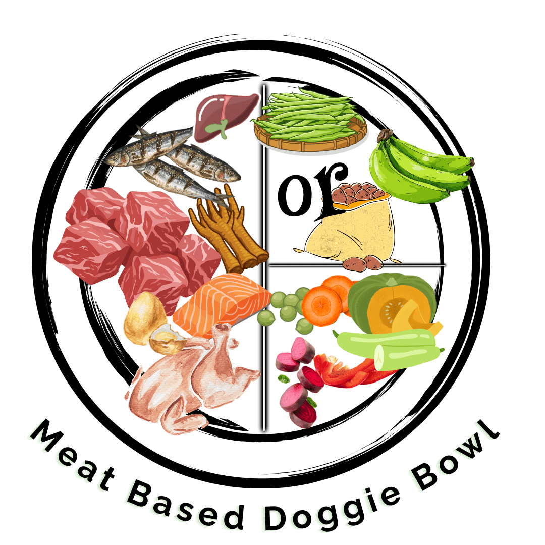 Consider feeding your dogs 55-60% cooked meat per meal with a variety of vegetables filling the remaining bowl. A good half of the remaining bowl can be carbohydrate heavy vegetables and base vegetables.