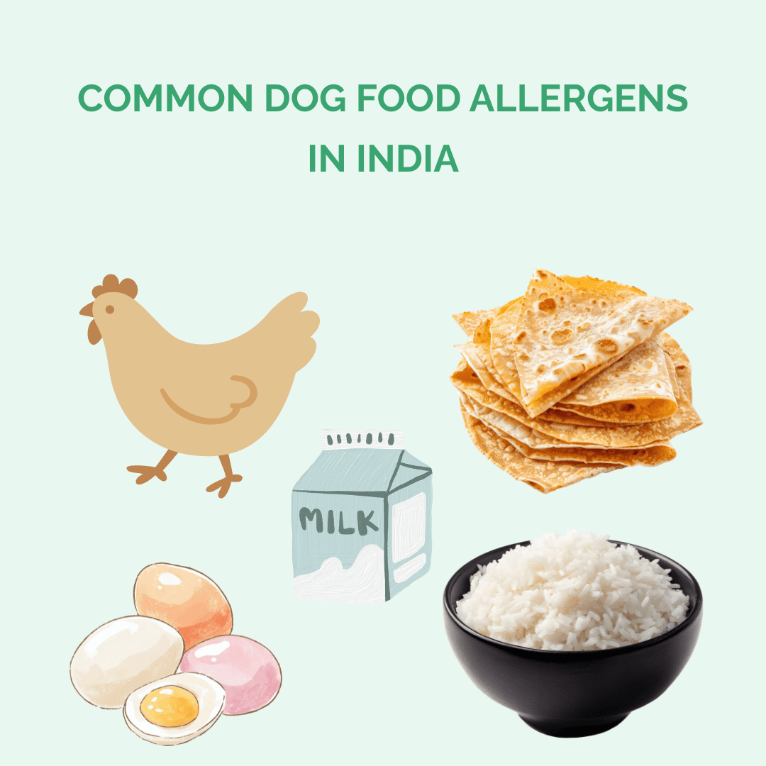 Some of the common allergy proteins for dogs in India are chicken or egg. Considering that’s what we find most convenient feeding our dogs. Other dog food allergens common in India are starch. In the form of rice, wheat, potatoes and high sugar vegetables like carrot, beetroot etc. If you are feeding these, consider noting changes in case you eliminate these foods.